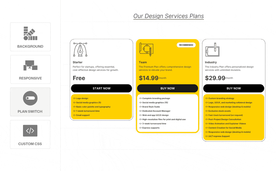 - Clickable Call-to-Action Buttons With Plan Name & Pricing